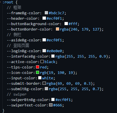 这次使用了css变量来定义全部的颜色变量,方便后期修改