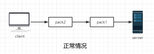 现在假设客户端连续发了两个数据包给服务端,用pack1和pack2来表示,那么就有以下几种情况: