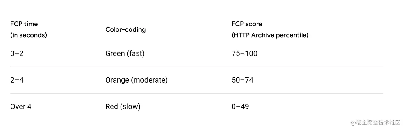 从开始加载到浏览器首次绘制像素到屏幕上的时间,也就是页面在屏幕上首次发生视觉变化的时间。但此变化可能是简单的背景色更新或者不引人注意的内容,她并不代表页面的完整性,可能会报告没有任何可见内容被绘制的时间