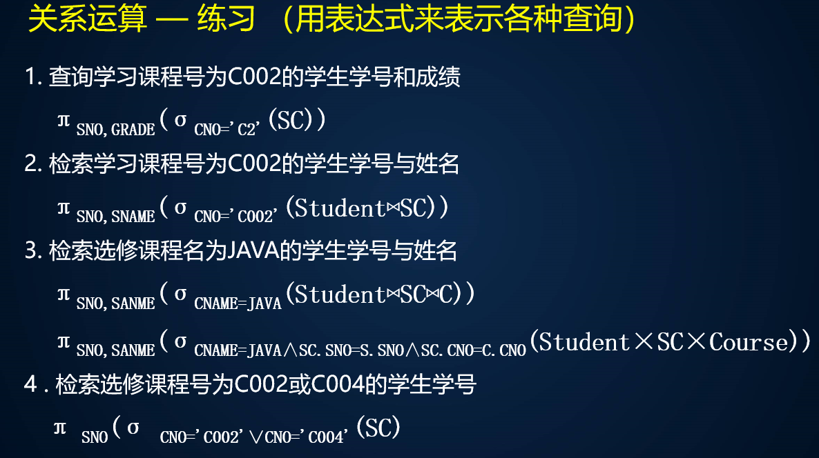 - 从操作关系个数上说,分为一元关系操作和二元关系操作。