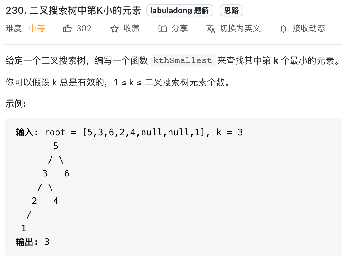 当然,size 字段需要在增删元素的时候需要被正确维护,力扣提供的 TreeNode 是没有 size 这个字段的,所以我们这道题就只能利用 BST 中序遍历的特性实现了,但是我们上面说到的优化思路是 BST 的常见操作,还是有必要理解的。