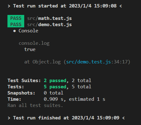 第二个 test 创建了个返回值永远为true的jestfn, 调用返回了true