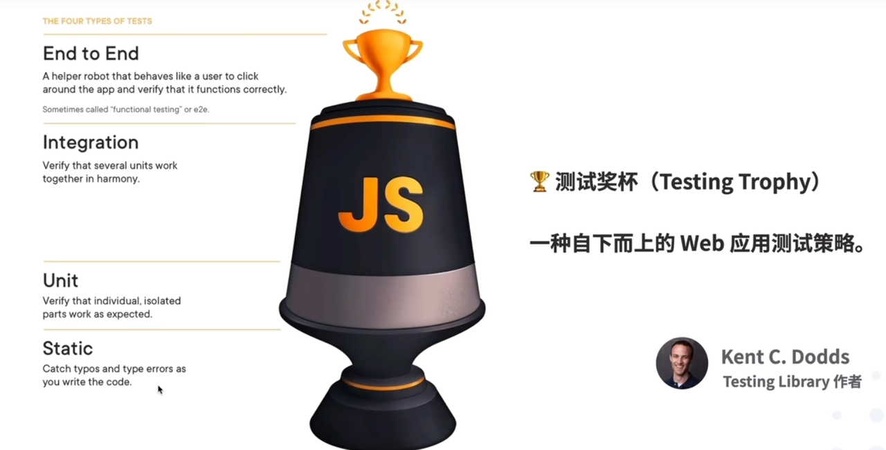分为端到端测试(模拟用户行为)集成测试(验证多个单元能否协调工作)单元测试,静态检查(ts eslint)