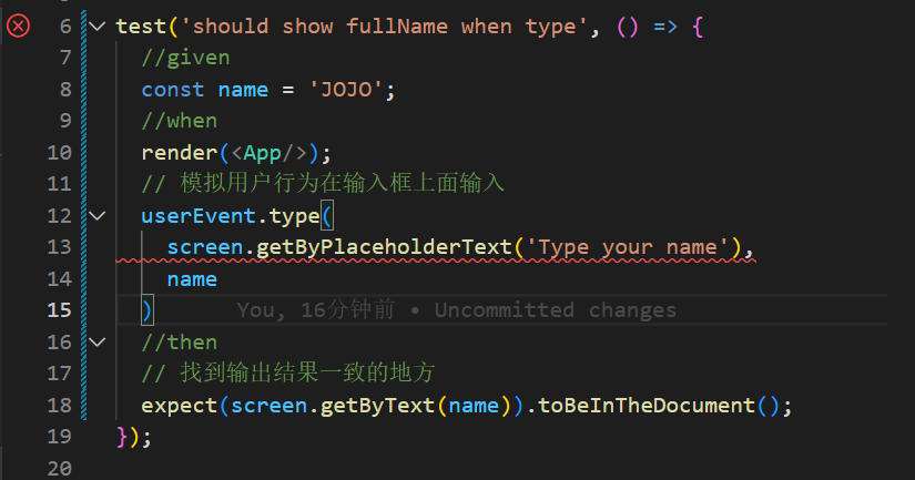 所以我们要使用 findByPlaceholderText 并进行 await 来找到 input 框