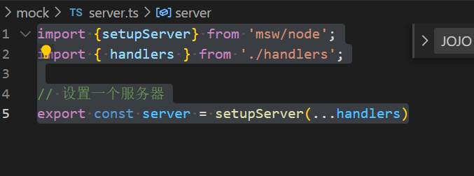 引入我们的 handlers 因为他是一个数组 所以可以解构出来 直接使用在 setupServer 中1