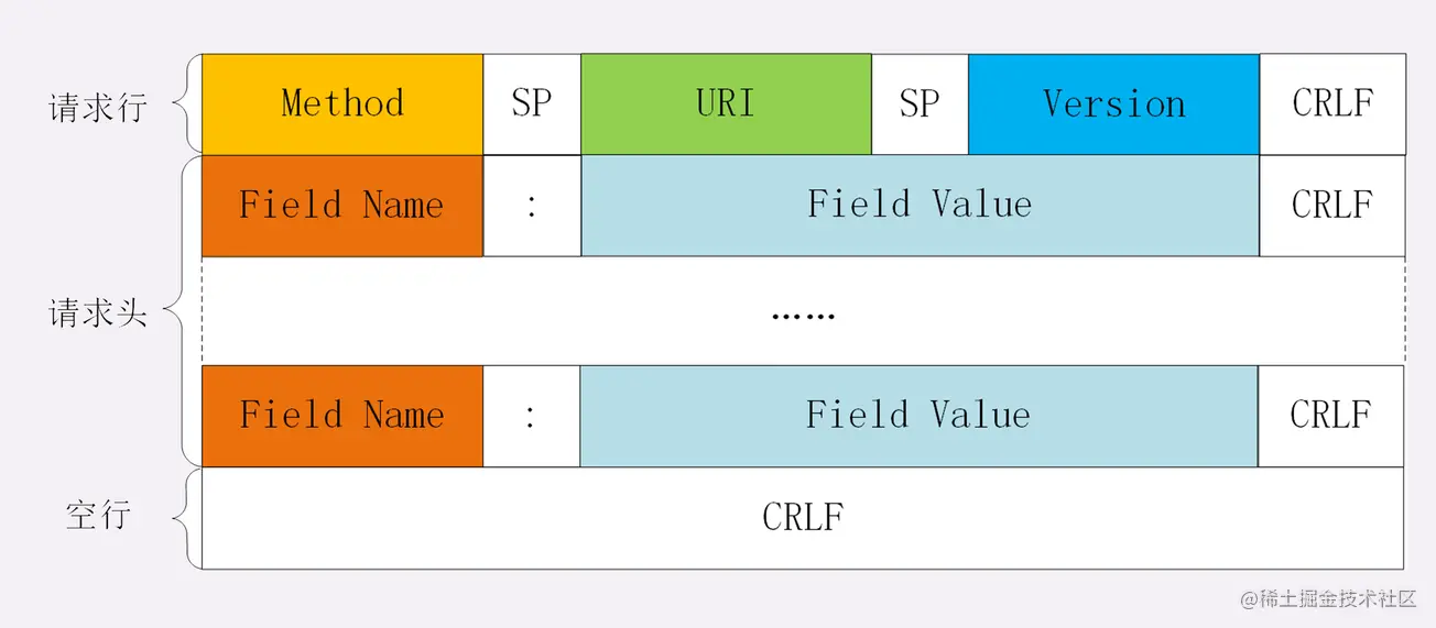 值得注意的是 在起始行中,每两个部分之间用空格隔开,最后一个部分后面应该接个换行,严格遵循ABNF语法规范