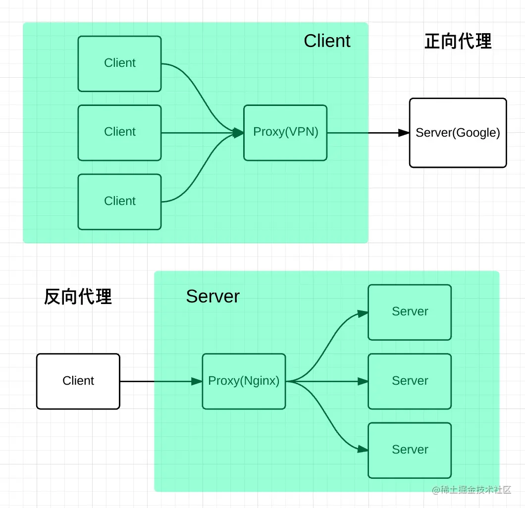 Nginx 相当于起了一个跳板机,这个跳板机的域名也是client.com,让客户端首先访问 client.com/api,这当然没有跨域,然后 Nginx 服务器作为反向代理,将请求转发给server.com,当响应返回时又将响应给到客户端,这就完成整个跨域请求的过程。
