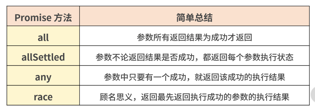 - 描述:此方法对于汇总多个promise的结果很有用,在es6中可以将多个