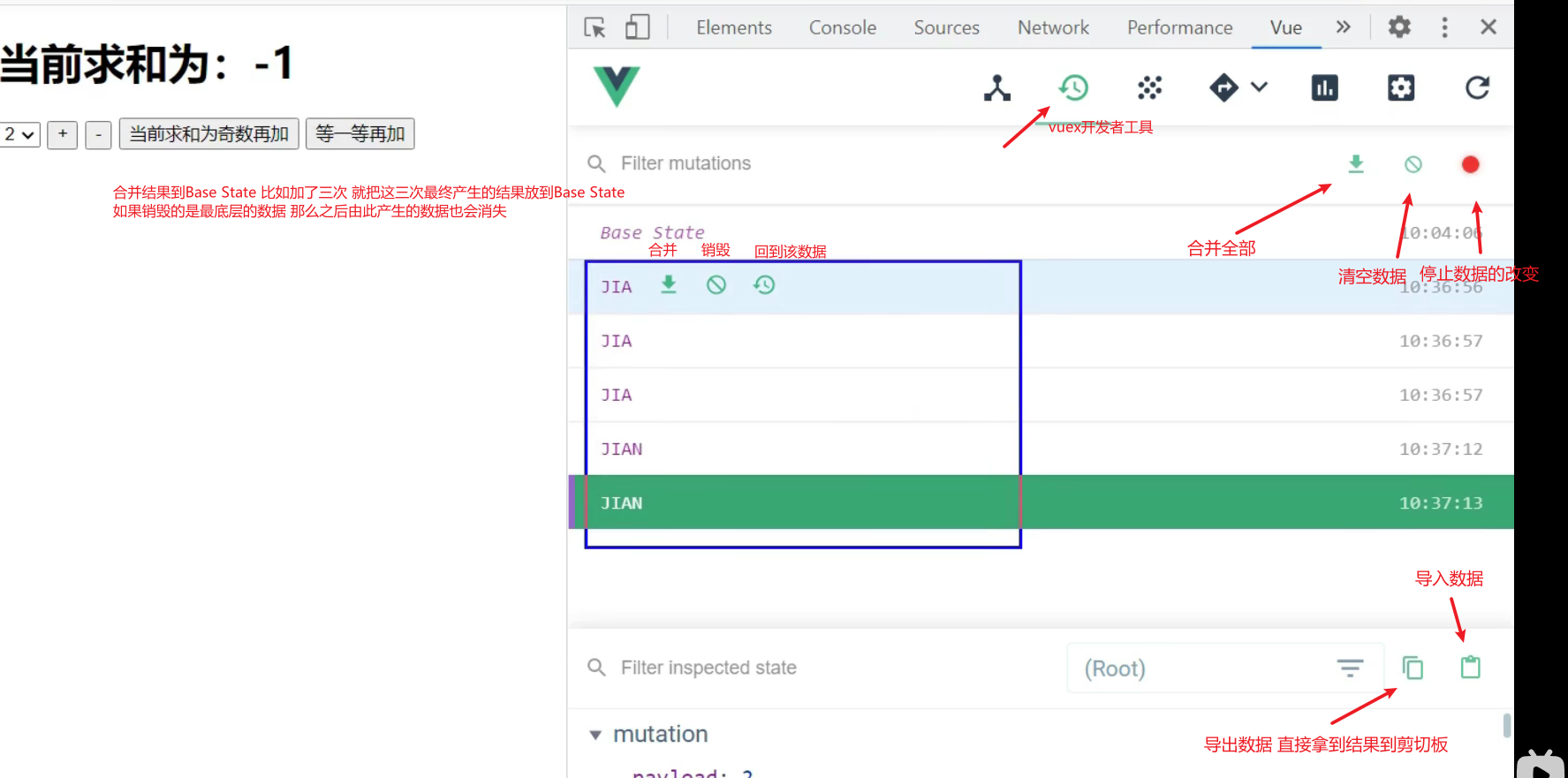 - 如果不需要action的业务逻辑判断 可以使用commit 直接发送给mutation进行加工 这里的加法和减法就是例子