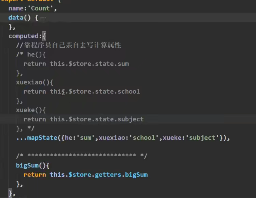 <h1>当前求和放大十倍是{{ $store.getters.bigSum }}</h1>