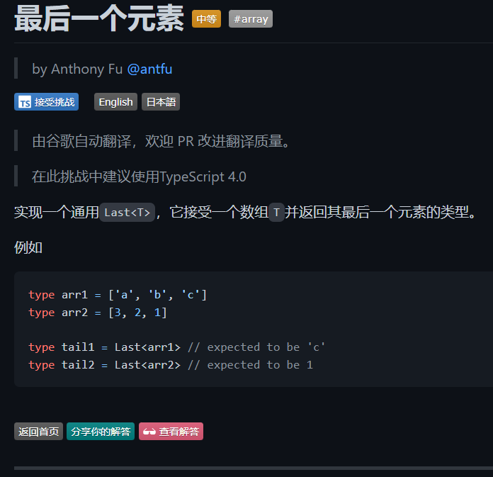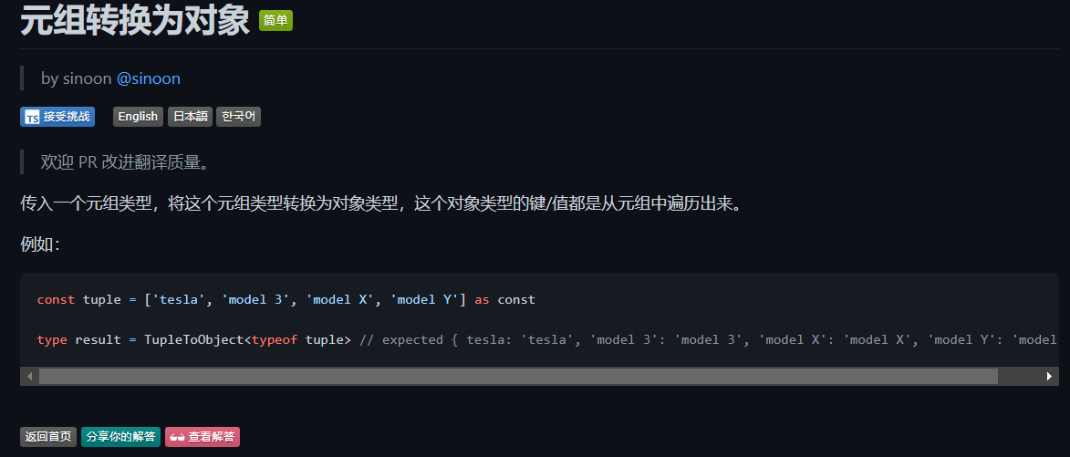 开始提前批直通车啦~~ 本篇带来 ts 超集的各种挑战加个人解说。源码地址:传送门