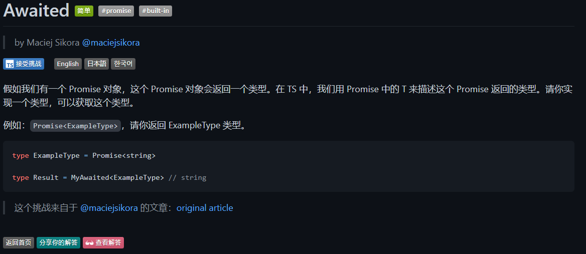 - 结合 awaited 的学习知识获取 Promise 的类型
