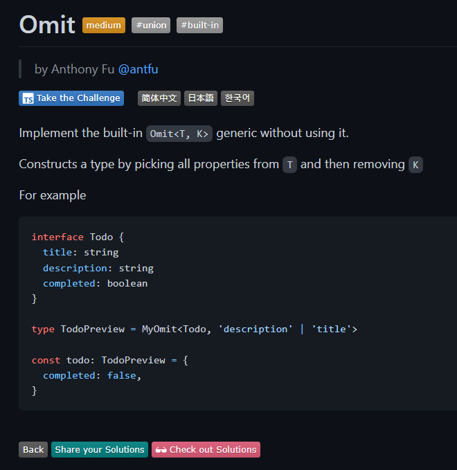 注意的点首先是默认赋值,因为他不存在其实就是相当于用了全部的 T 的键,然后还有一点就是,他是 readonly 和 omit 的结合。在 K 中的所有值都是 readonly,不在 k 中的所有值都是 omit