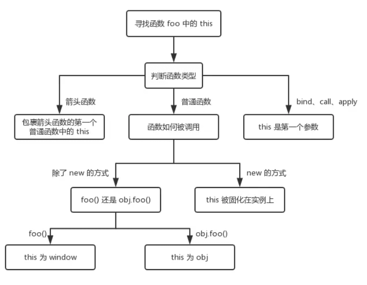 this的绑定优先级如下:new最高,然后是bind,之后是obj.foo() 最后是foo() 同时this一旦被绑定,就不会被任何方式改变。